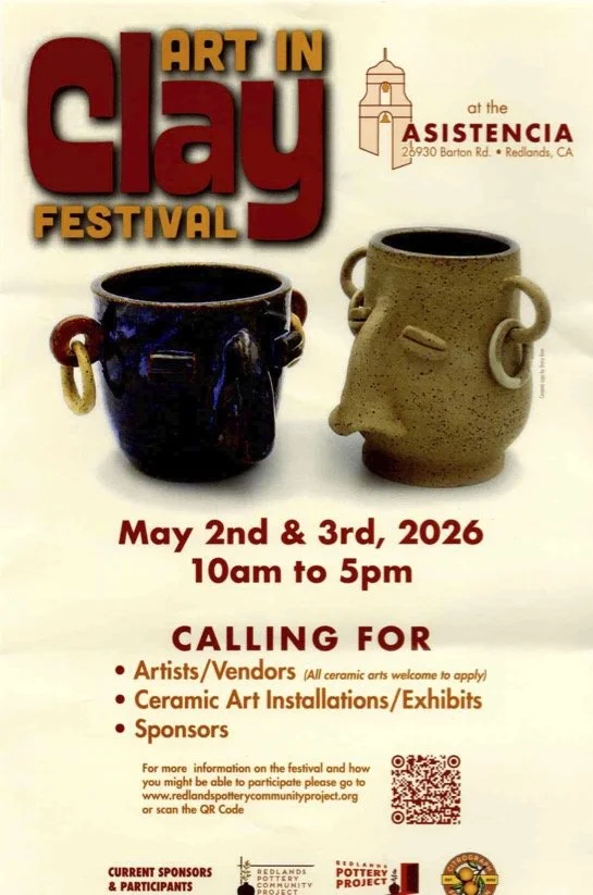 Back to All Events Art in Clay Festival Saturday, May 2, 2026 10:30 AM Sunday, May 3, 2026 5:00 PM 26930 Barton Road Redlands, CA, 92373 United States (map) Google Calendar ICS